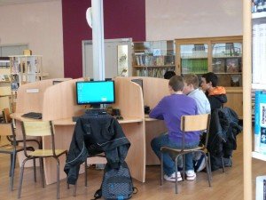 12 postes informatiques sont en accès libre et connectés à internet. Ils permettent également de consulter la base documentaire du centre et d’accéder ainsi à des ressources multiples, en ligne ou archivées.